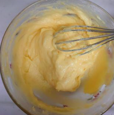 - 別のボウルで卵黄と砂糖を白っぽくなるまで混ぜ合わせます。
