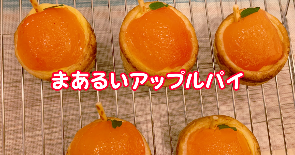 - 軽く水分を拭きとった林檎を乗せて、溶いた卵をハケでパイシートをぬり、200度に予熱したオーブンで14分〜16分焼く。